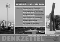Denkzettel - Texte zu Kunst und Zeitgeschehen „Denkzettel“ ist der Name einer Zeitschrift, die im Mai 2004 erstmalig publiziert wurde. Sie enthält Arbeiten und Texte von Kooperative Kunstpraxis. |
