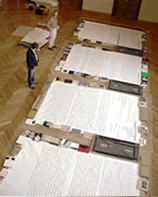 Ab dem 22.12.2003 werden in Dresden die Thesen zu Kunst und Öffentlichkeit plakatiert. Dieses Plakat ist das Ergebnis eines Workshops in Weimar und Dresden. Es soll Diskussionen um die öffentliche Kunstförderung unter dem Aspekt einer Kunst als kritischem Regulativ der Gesellschaft auslösen. |