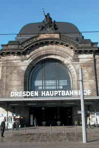 24 Hauptbahnhof Im Februar 1945 bestimmten neben Militärangehörigen Flüchtlinge das Bild auf den Dresdner Bahnhöfen. Sie wurden vom Deutschen Roten Kreuz und der Nationalsozialistischen Volkswohlfahrt betreut und so rasch es die schwierigen Verkehrsverhältnisse erlaubten, nach Westen weitertransportiert. In den Wartesälen und Luftschutzkellern des Hauptbahnhofes übernachteten Abend für Abend viele Hundert Menschen. Im Saal "Weesenstein", neben dem Durchgang von der Kuppelhalle zu den Bahnsteigen gelegen, hatte das Rote Kreuz eine Bahnhofsdienststelle eingerichtet. Zur Betreuung der Flüchtlinge waren regelmäßig neben den Helferinnen ältere Schulkinder eingesetzt. Während des Luftangriffes in den frühen Nachtstunden des 14. Februar 1945 wurde der Bahnhof schwer getroffen. In den unzureichend ausgebauten Luftschutzkellern starben etwa 750 Menschen. |
